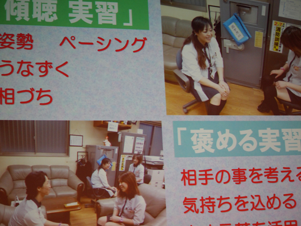 高岡店では、役職者が研修を通して学んだ「傾聴力」を、他のスタッフにも伝え身につけてもらうために、店舗でロープレを行ったそうです。